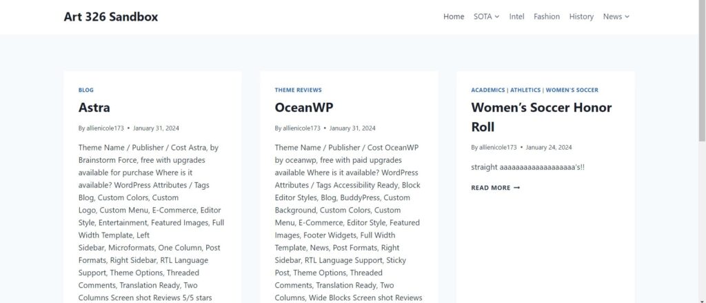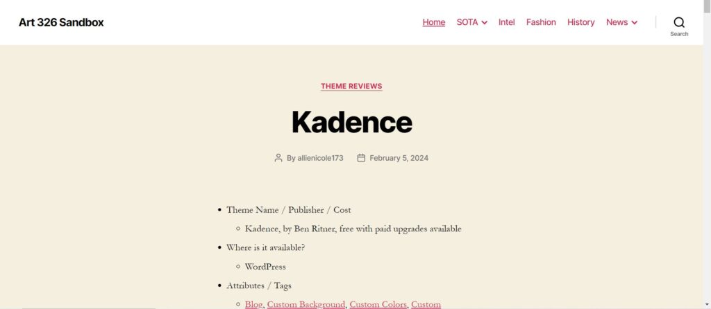 - 3.5/5 stars. Nice layout of posts, sidebar and footer widgets options and customization. Ability to change typeface, limited color customization but still some. Default options are a little tacky, but they can be worked with to improve through customization. Not the most simple and clean layout, but it could be good for just a basic website.